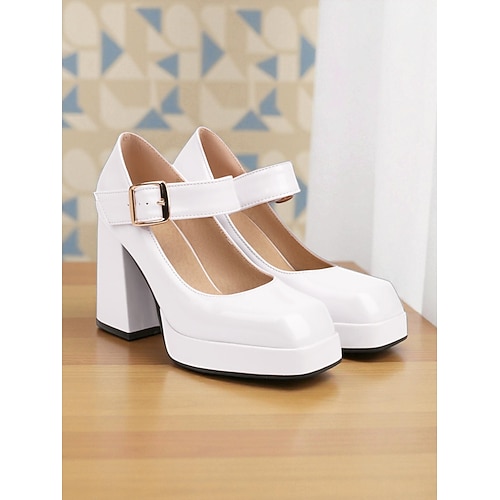 scarpe con plateau in similpelle verniciata rossa da donna – tacchi alti e spessi con cinturino con fibbia, stile retrò audace anni '80 per feste, eventi formali e Natale