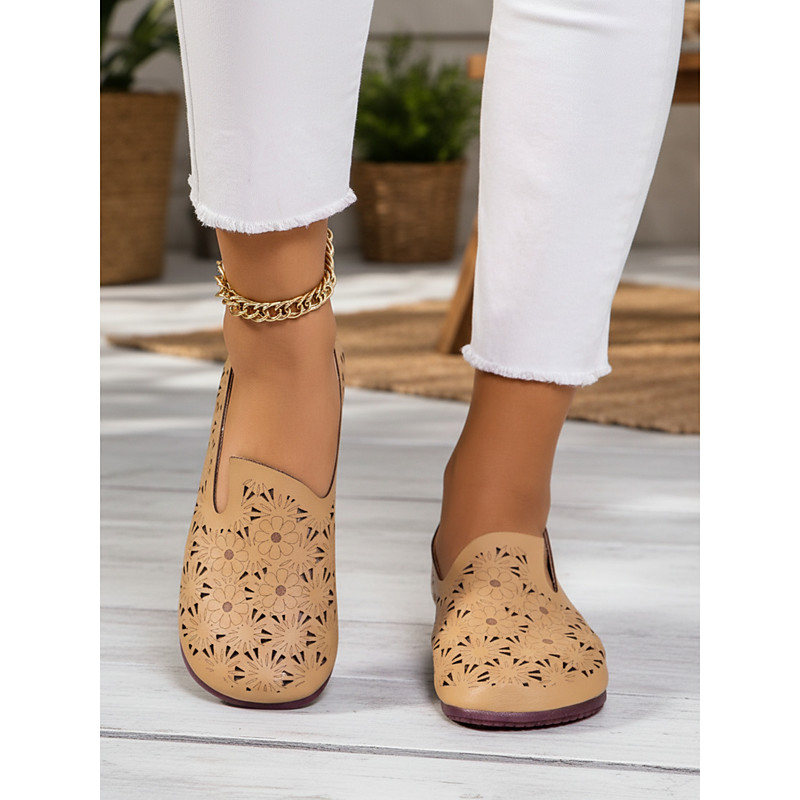 Women's White Perforated Wide-fit Slip-On Shoes with Floral Cutout Design, Breathable Comfort Shoes for Casual Wear, Travel and Everyday Style