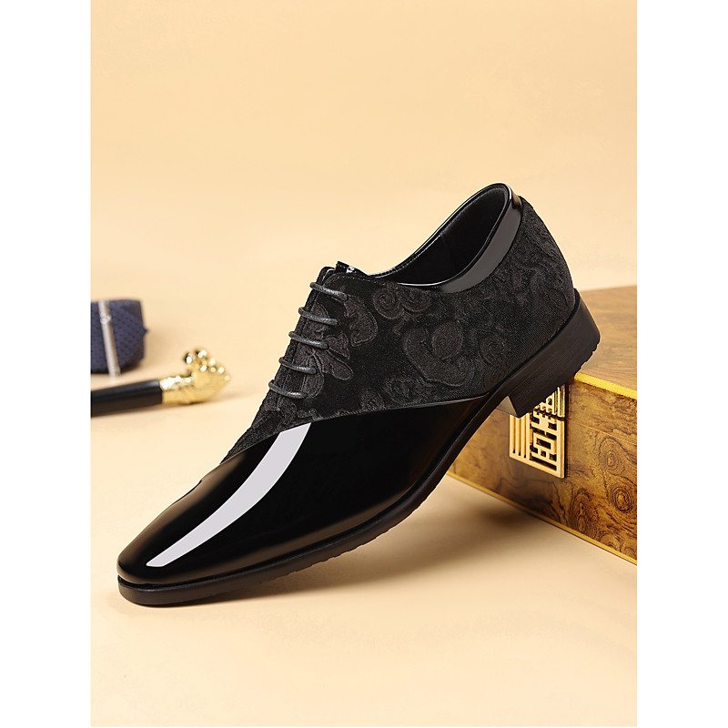 Men's Tan and Black Colorblock Formal Shoes with Patent Finish – Fashion-Forward Dress Shoes for Parties and Special Occasions