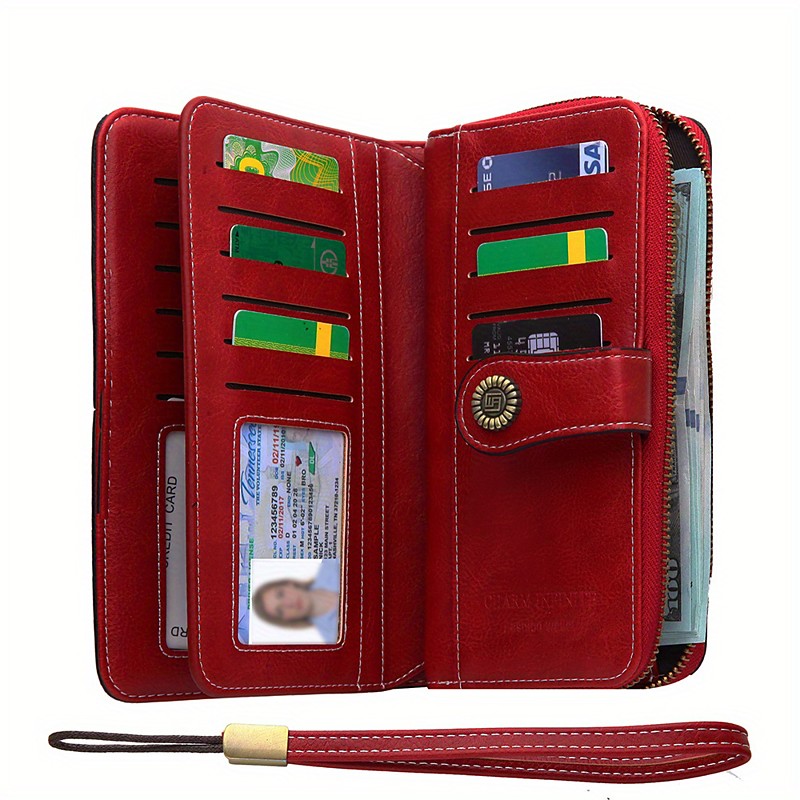 Women's RFID Blocking Faux Leather Wallet – Large Capacity Zipper Clutch with 24 Card Slots Wrist Strap