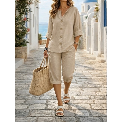 Per donna Set coordinati Camicie di cotone e lino Set Camicia Shorts Shorts da Spiaggia Pantaloncini casual Maglietta Mischia e abbina Vestito 2 pezzi Sport Streetwear Semplice Quotidiano Manica Lunga