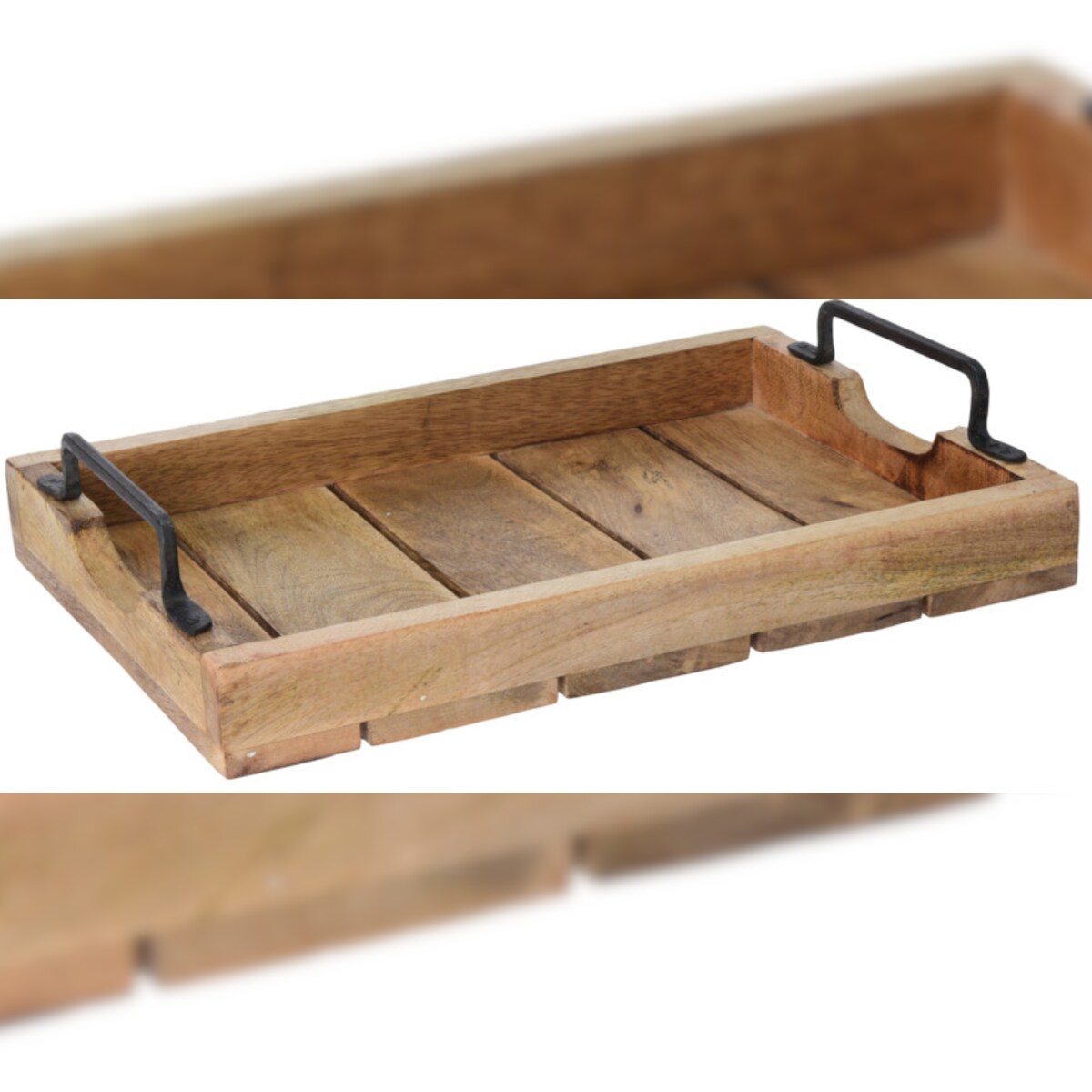 Tablett Holz Frühstück Tablett Serviertablett Vintage Metallgriff 38x25,5x5cm A510