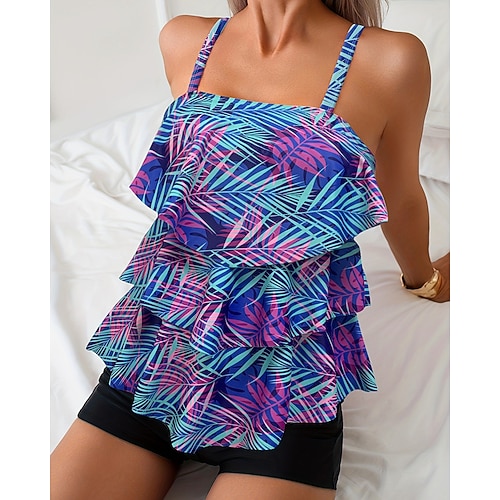 Per donna Costume da bagno Tankini 2 pezzi Tropicale Ultra Leggero (UL) Elastico Senza Maniche Costume da Bagno Surf Snorkeling Estate