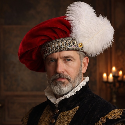 Retrò Vintage Medievale Rinascimento Cappello Principe Gentiluomo Nobile Ricamato Costume Per uomo Fantasia Halloween Carnevale Fiera Rinascimentale LARP Festa a tema retrò Adulti Cappello Tutte le