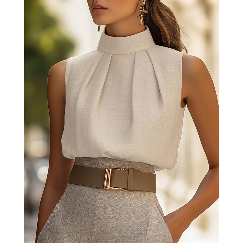 Women's Summer Tops Blouse Dressy Tops Plain Elegant Vintage Ladies Sleeveless High Neck Regular Tops Daily Work Holiday Ruched Patchwork Draped Black Summer Spring