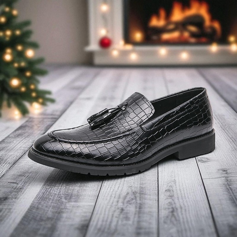 Men's Green Crocodile Texture Tassel Loafers - Stylish Christmas Casual Look, Perfect for Holiday Parties and Festive Celebrations