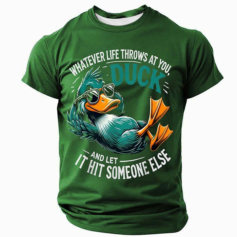 Mens Short Sleeve Graphic T-Shirt, Funny Duck Pun Quote Tee: 'Whatever Life Throws At You, Duck And Let It Hit Someone Else'
