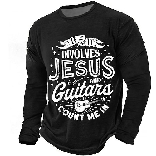 se si tratta di Gesù e chitarre contatemi dentro maglietta a maniche lunghe da uomo divertente chitarrista cristiano amante della musica fede religiosa abbigliamento top abbigliamento s m l xl xxl