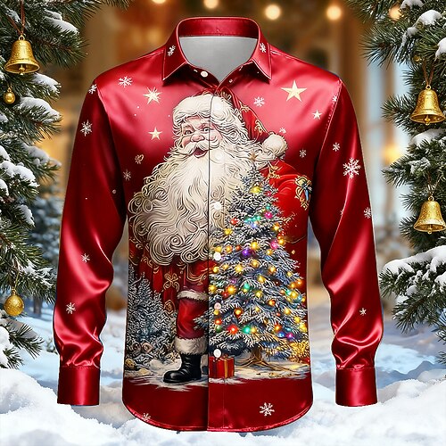 Natale Per uomo Babbo Natale Albero di Natale Scena di Natale Camicia Camicia in raso Camicia elegante Manica Lunga Moda Casual All'aperto Feste Ferie Primavera Autunno Collo ripiegato Stampa 3D