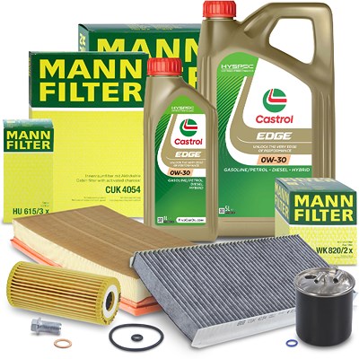 Mann-filter Inspektionspaket B + 6 L CASTROL EDGE FST 0W-30 [Hersteller-Nr. 10493197] für Mercedes-Benz