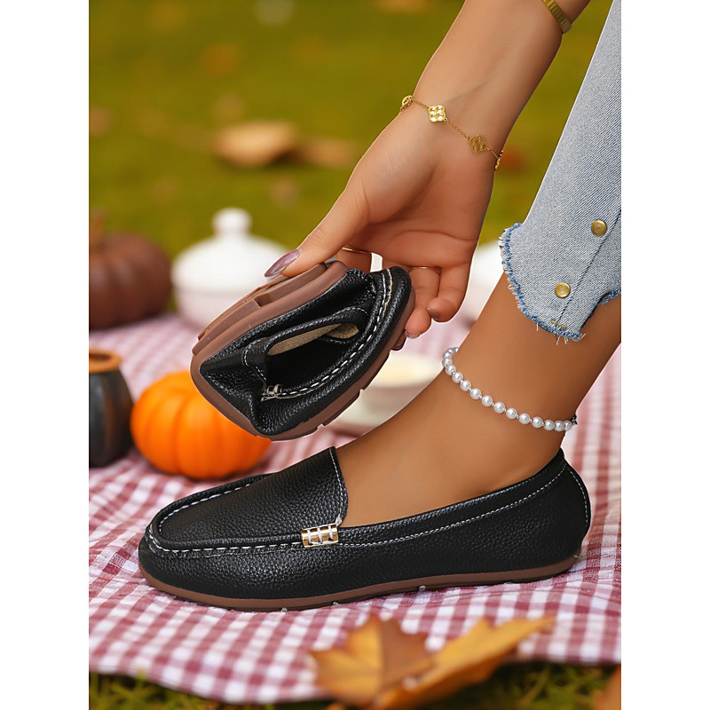 Women's Black Flexible Moccasin Flats – Soft Foldable Casual Driving Shoes for Fall Picnics, Garden Parties Travel