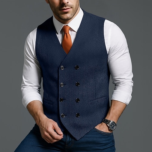 Per uomo Gilet Formale Vacanza Quotidiano Ricevimento di matrimonio Moda Casual Primavera Autunno Tasca Bottoni Poliestere Misto lana Confortevole Semplice Spina di Pesce Doppiopetto Scollo a V