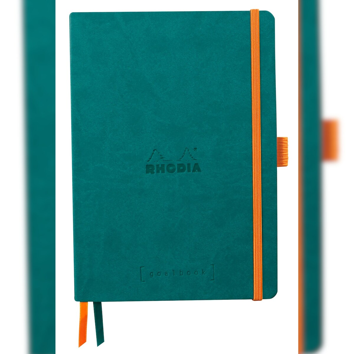 Rhodiarama Goalbook A5 mit flexiblem Einband, 120 Blatt elfenbein 90g, Dot/punktkariert - Pfaugrün 117806C