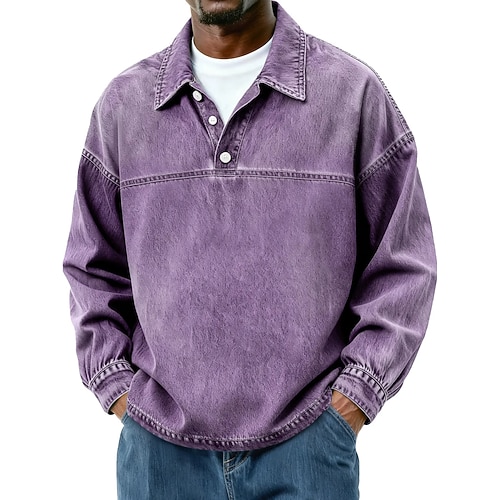 Per uomo Maglietta Camicia 100% cotone lavaggio acido Manica Lunga Maglione Mezza zip Primavera Autunno Autunno Inverno Semplice Vintage Streetwear Casual Lavato Manica corta Casuale Casa Streetwear