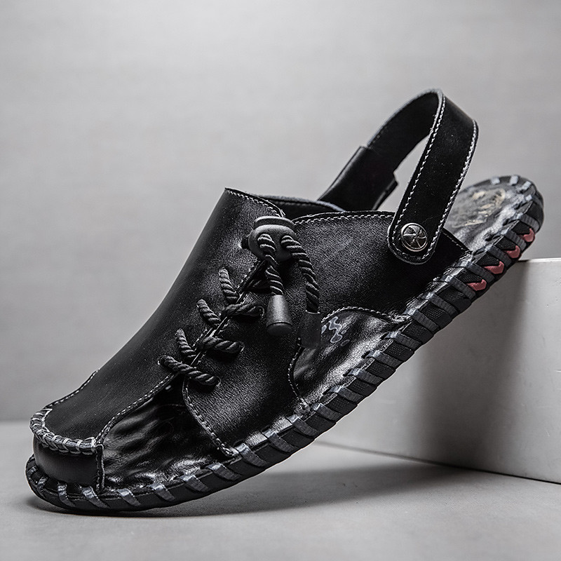 Men's Microfiber Leather Sandals Black Summer Sandals Slippers Handmade Shoes Flat Sandals Plus Size Casual Outdoor Vacation Beach Breathable Elastic Band Shoes Red Brown Yellow brown