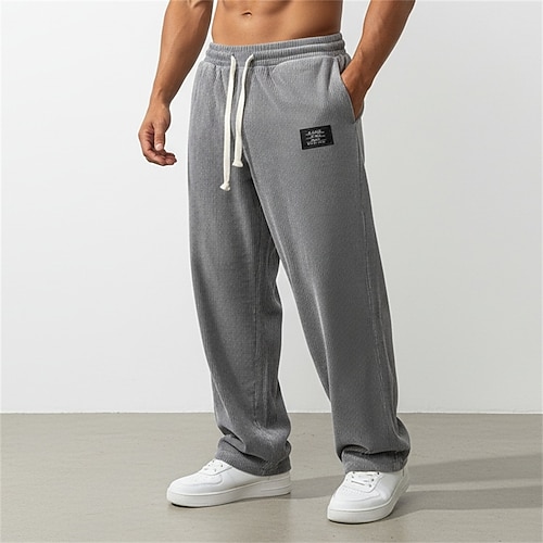 Herren Jogginghose Hose Cordhose Freizeithose Kordelzug Elastischer Bund Gerader Schnitt Einfach Komfort Volle Länge Täglich Sport im Freien Ferien Urlaub Mode Blau Schwarz Mikroelastisch