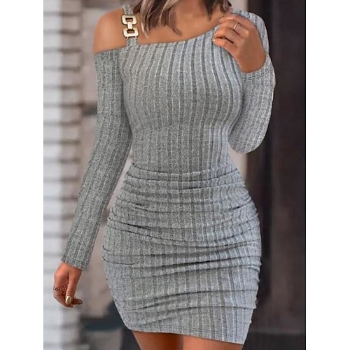 Per donna Abito Midi Abito Bianco Abito da laurea Vestito Casual Attillato Moda Moderno All'aperto Vacanza Feste Vestibilità regolare Semplice Manica Lunga Senza Spalle Nero Bianco Rosa Rosso Estate