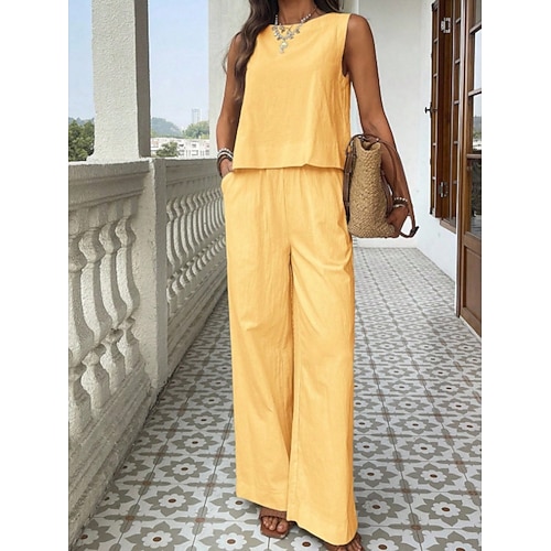 Per donna Set di biancheria in cotone Set da due pezzi Set di Pantaloni Senza Maniche Girocollo Semplice Moda Streetwear Casuale Quotidiano All'aperto Bianco Giallo Cachi Estate Vestibilità regolare