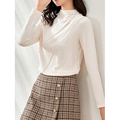 Per donna Blusa Tinta unica Elegante Essenziale Casual Manica Lunga Collo Alto Top Regolari Quotidiano Nero Bianco Marrone Verde Primavera Autunno Inverno