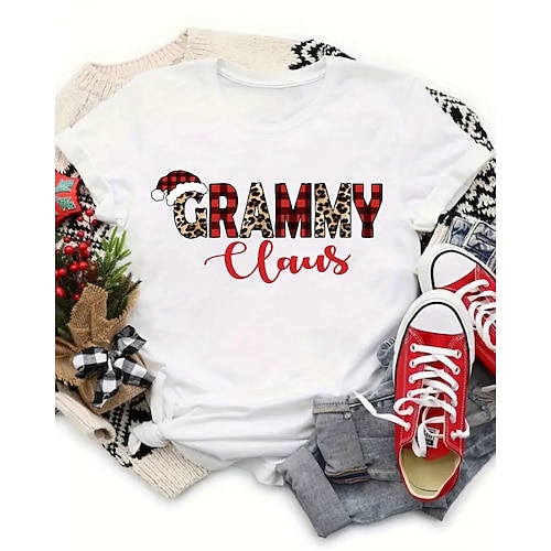 Natale Per donna Blusa Grafico Babbo Natale Albero di Natale Elegante Vintage Tropicale Manica Corta Girocollo Top Regolari Lavoro Quotidiano Ferie Arricciato Patchwork Stampato Bianco e nero Nero