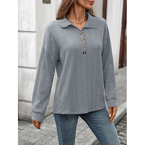 Per donna Camicia Blusa Liscio Streetwear Essenziale Manica lunga Colletto Top regolari Fine settimana Pasqua Bottoni Nero Bianco Giallo Rosa Blu marino Primavera Autunno
