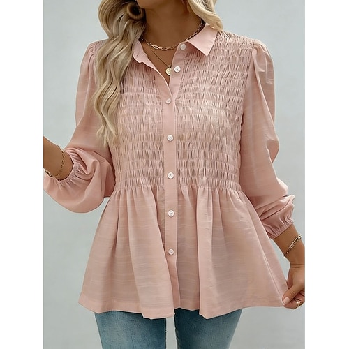 Per donna Blusa Tinta unica Elegante Casual Manica Lunga Colletto a Camicia Top corti Quotidiano Arricciato Bottoni Nero Bianco Rosa Verde Estate Primavera Autunno