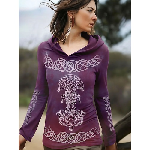 Per donna Maglietta Grafico Piante Vintage Elegante Classico Manica Lunga Con Cappuccio Top Regolari Quotidiano Weekend Stampato Nero Giallo Viola Marrone Primavera