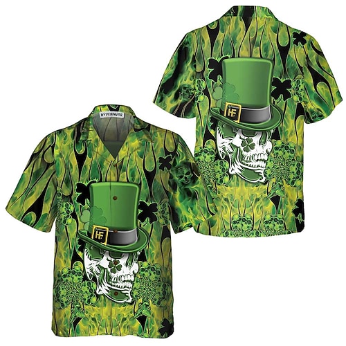 camicia da uomo per il giorno di san patrizio camicia hawaiana estiva stampe grafiche con teschi giorno di san patrizio st. giorno di san patrizio trifoglio couverture nero/verde verde militare