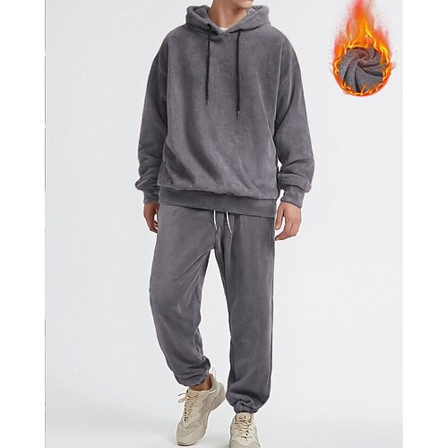 Per uomo Tuta da Ginnastica Felpa con cappuccio e pantaloni Set di abiti Set di felpe con cappuccio Felpa con Cappuccio All'aperto Quotidiano Sportivo Coulisse Tasca Semplice Blu Nero Marrone Pile