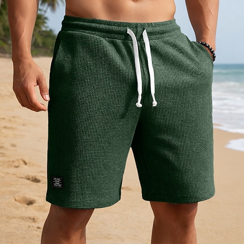 Per uomo Pantaloncini Waffle Shorts Pantaloncini casual Tasca Elastico in vita Testurizzato Semplice Comodità Traspirante Lunghezza al ginocchio Casuale All'aperto Spiaggia Vacanza Moda Nero Bianco