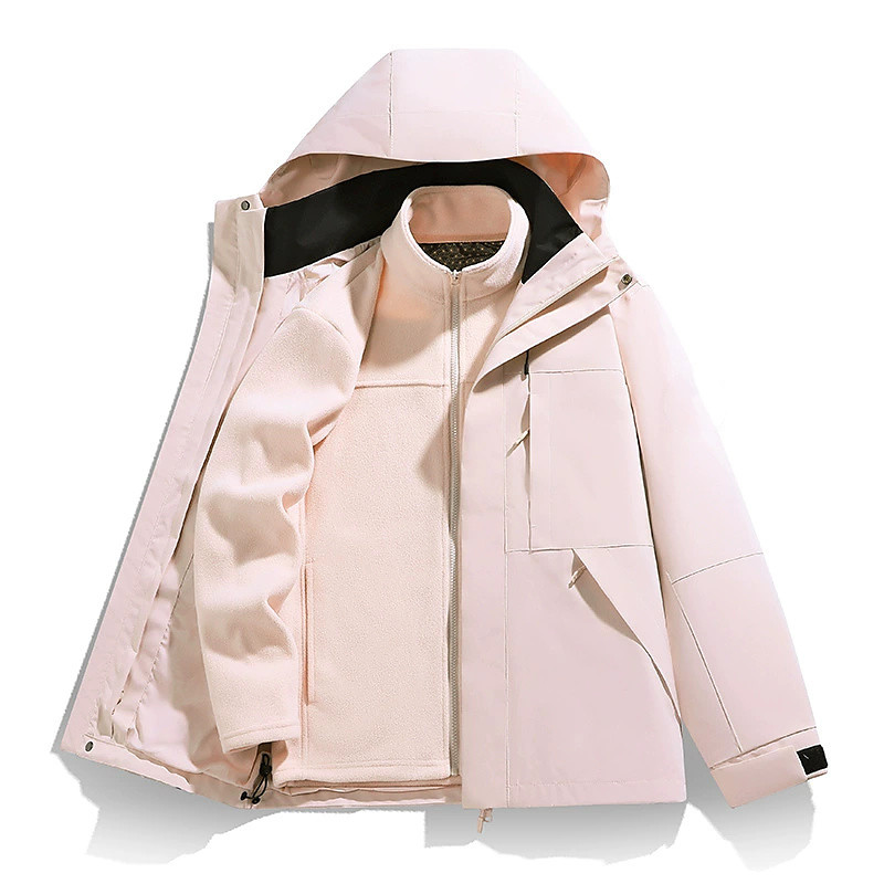 Women's 3-in-1WaterproofDownJacket Waterproof Windproof Zipper Pocket Casual Solid Color Outdoor Vacation Street Daily Wear Zipper Regular Hooded Regular Fit Long Sleeve Outerwear Yellow Pink Dark