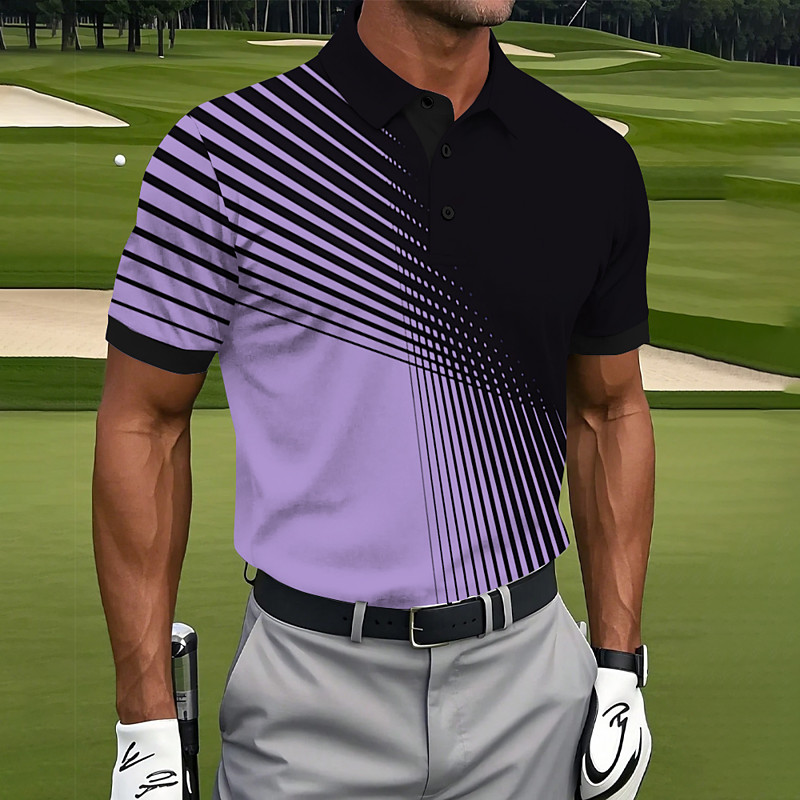 Men's Golf Line Polo Sports Polo Shirts Short Sleeve Polo Shirts Collared Shirts Casual Athleisure Buttons Summer White Blue Purple