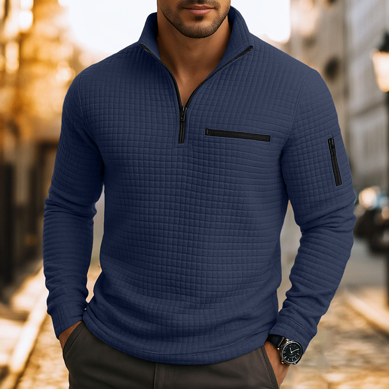 Men's Waffle Polo Shirts Textured Casual Quarter Zip Long Sleeve Fashion Comfortable Color Block Zip Up Pocket Fall Spring Fall Regular Fit White Black Blue Light Blue Dark Gray Purple Waffle Polo