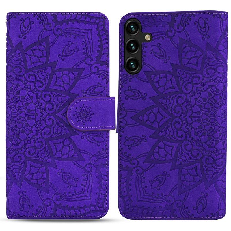 Samsung Galaxy A35 5G Fodral Blommönster Äkta Läder - Lila