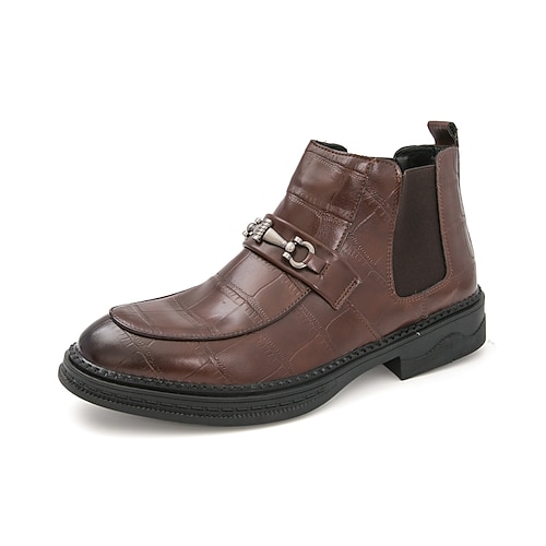stivaletti Chelsea marroni da uomo con fibbia in metallo, stivaletti eleganti slip-on in similpelle per abbigliamento business, da ufficio e formale