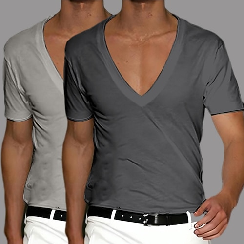 Herren T Shirt T-Shirt Kurzarm Kurze Ärmel V Ausschnitt Gekerbt Sommer Farbblock Mode Designer Basic Klassicher Stil Urlaub Straße Lässig Schwarz Weiß Grau Top T-Shirt für Herren