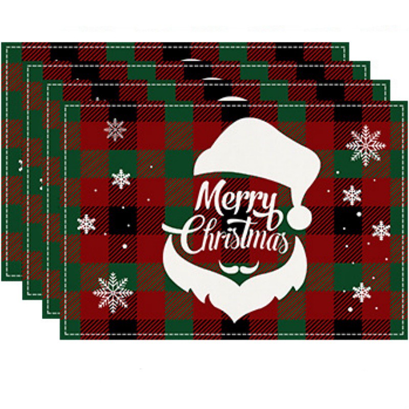 4 pcs Christmas Linen Placemats, Winter Santa Claus Letter Printed Table Mat, Christmas Restaurant White Linen Placemats, Living Room Dining Table Decoration, Insulated Table Mat