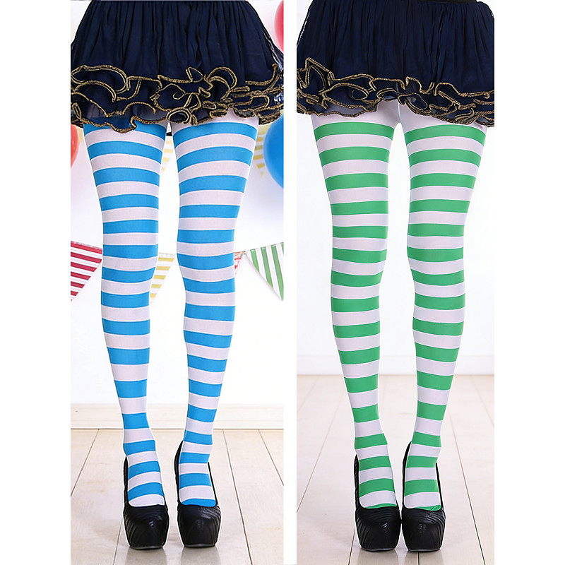 Women's Carnival Party Striped Tights Set (2 Pairs), Stretchy Over-the-Knee Style, Blue Green Horizontal Stripe Design, Fun Costume Socks for Adults, Festival, Carnival, Cosplay Theme Parties