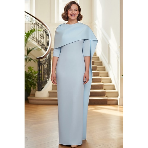 Tubino Colonna Lunghezza al pavimento Abito Formale Abito da sera Abito da cerimonia per signora Manica 3/4 Girocollo Elegante Formale Raso Crepe Elasticizzato con Tinta unita
