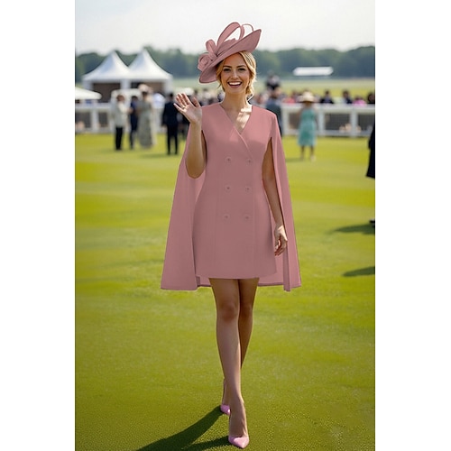 Linea ad A Tubino Colonna Lunghezza al ginocchio Abito Derby Abito da cerimonia per signora Manica Corta Scollo a V Elegante Vintage Derby del Kentucky Tessuto Elasticizzato con Bottoni Tinta unita