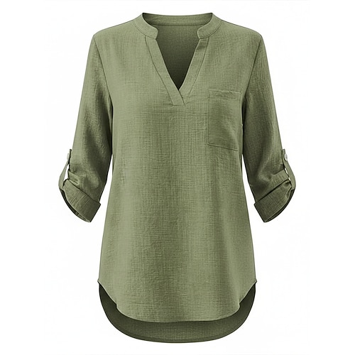 Per donna Top estivi Blusa Top Eleganti Arricciato Patchwork Tasca Tinta unica Semplice Elegante Vintage Signore Manica 3/4 Colletto a Camicia Top Regolari Quotidiano Lavoro Uscire Blu Giallo Viola
