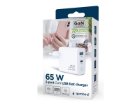 Gembird - Strømforsyningsadapter - GaN, LED - 65 Watt - 3 A - PD, QC 3.0 - 2 output-stikforbindelser (24 pin USB-C, USB Type A) - hvid