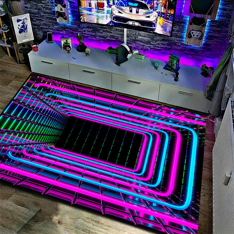 Area Rug 3D Optical Illusion, 2D Flat Print, Laser Light Ball Design, Modern and Creative Floor Carpet for Living Room, Bedroom, Unique Home Decor