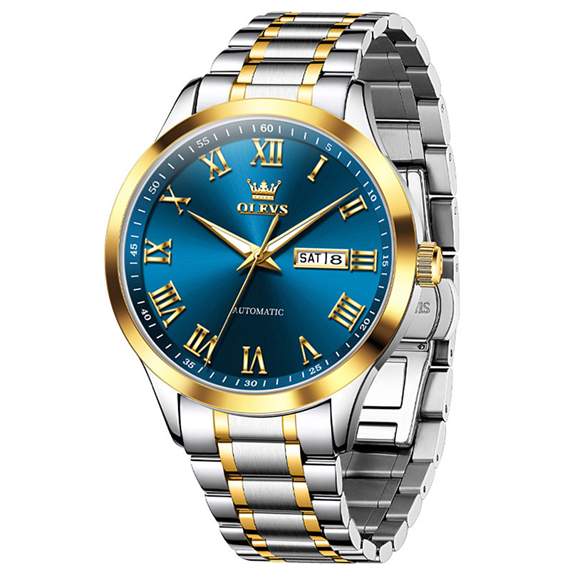 The New Olevs Men'S Business Watch With A Stainless Steel Strap Luminous Calendar And Day Display Automatic Mechanical Watch Roman Simple And Fashionable Waterproof Sports Men'S Wristwatch