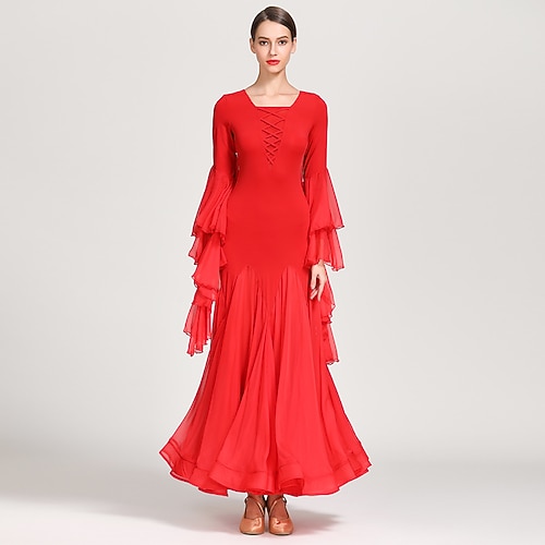 Balli latino-americani Abito Nappa A strati Paillettes Da ragazza Prestazioni Addestramento Manica lunga Poliestere