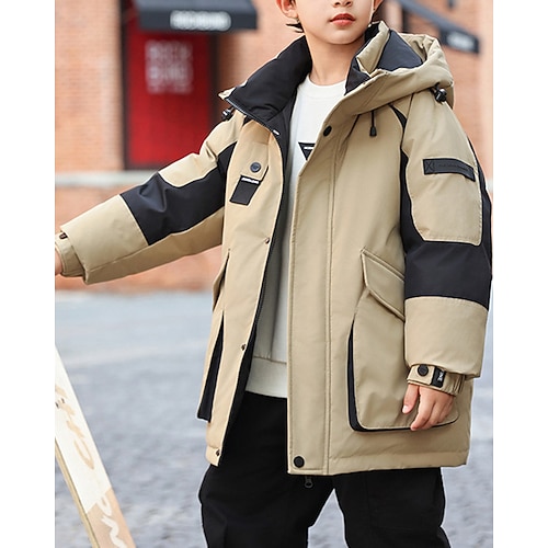 Bambini Unisex Giacca in piuma Giacca da esterno Giacca Imbottita Capispalla Tinta unica Manica Lunga Impermeabile Tenere al caldo Antivento Cappotto All'aperto Quotidiano Essenziale Nero Bianco