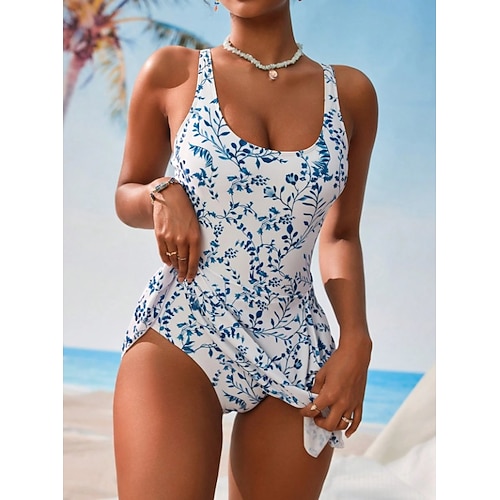 Costume da bagno intero da donna monokini con gonna controllo della pancia vita alta schiena scoperta abbigliamento da spiaggia vintage floreale grafico collo a U senza maniche costumi da bagno