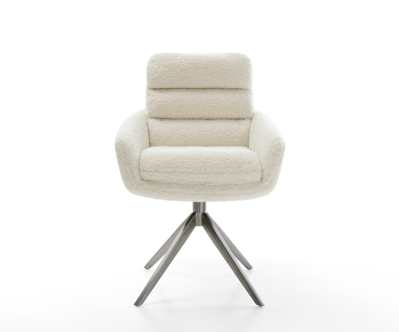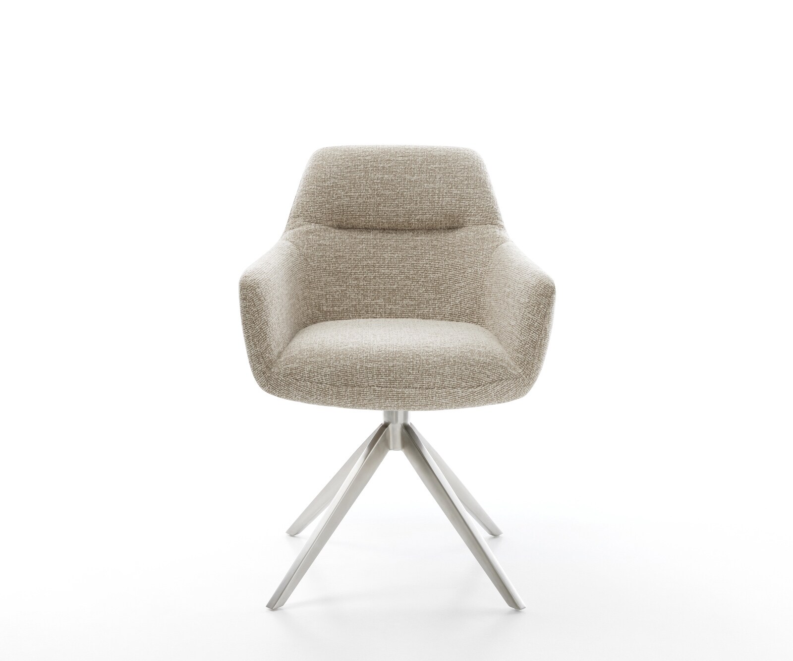 DELIFE Draaistoel Yago-Flex met armleuning geweven stof beige kruisframe breed wit 360° draaibaar rocker-functie pocketveer kern