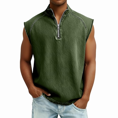 Da uomo Canotta Maglietta smanicata Camicia di Jeans Senza Maniche Con cerniera Estate Semplice Moda Designer Casual Stile Vintage Bottoni All'aperto Palestra Uscire Nero Verde chiaro Rosa Maglietta