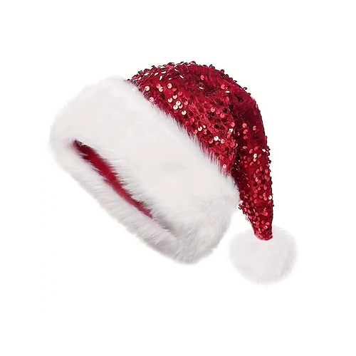 Cappello da Babbo Natale con paillettes natalizie da donna, design con paillettes rosse e verdi e pelliccia sintetica bianca, accessorio festivo per feste e celebrazioni natalizie